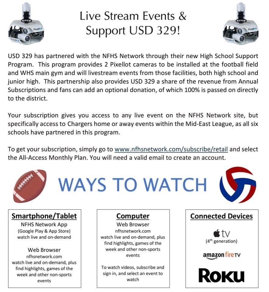 Check this out! The ability to watch Charger events live from your home or any location. See attached links for more information and to subscribe.